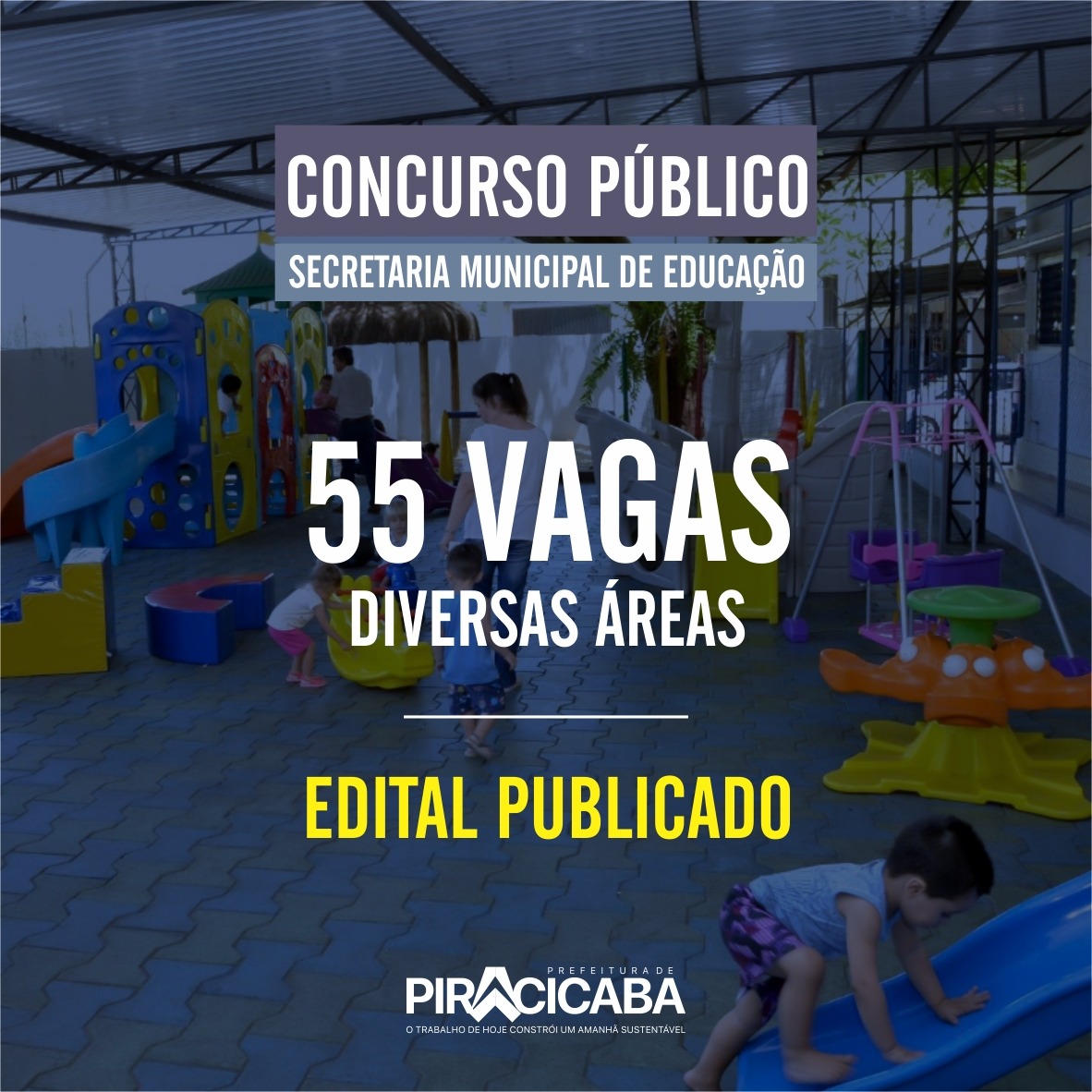 A Prefeitura de Piracicaba abre concurso público – Edital 02/2019 – para a contratação de profissionais na área de educação. Serão 55 vagas para os cargos de auxiliares, intérprete educacional de Libras/Português, professor de ensino fundamental e nutricionista.