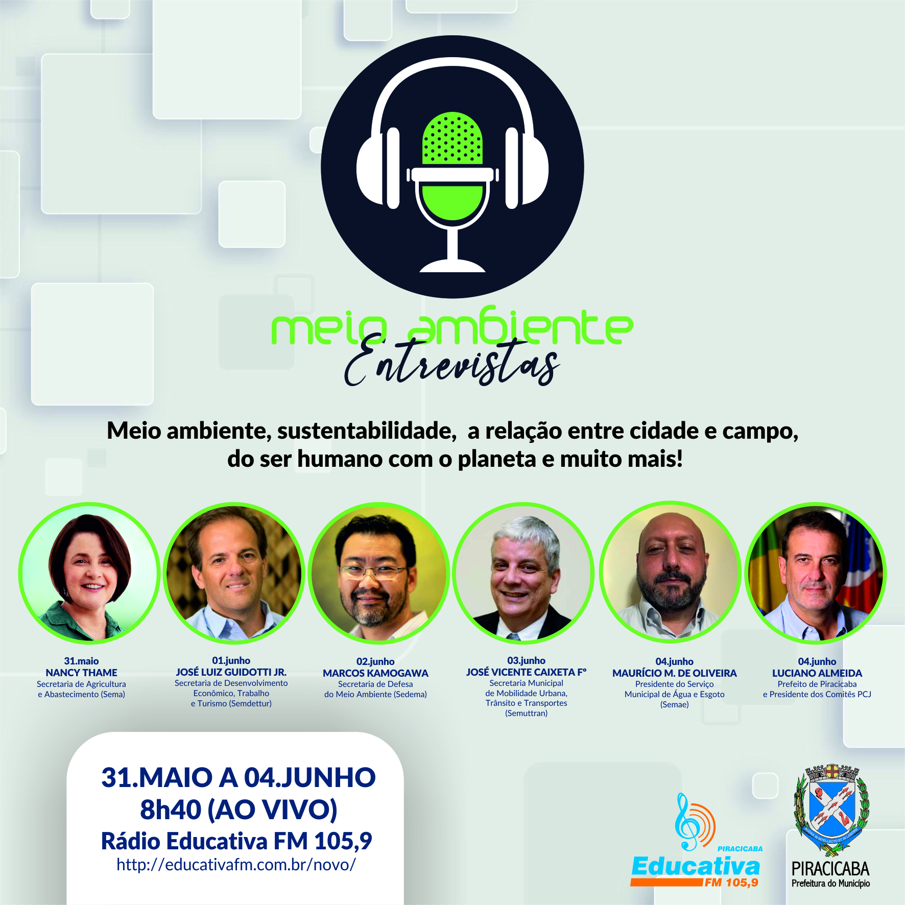 Em alusão ao Dia Mundial do Meio Ambiente, comemorado no dia 5/06, a Prefeitura de Piracicaba realiza, a partir de segunda-feira, 31/05, diversas ações para discutir a temática ao longo do mês de junho. Além de uma série de entrevistas com o prefeito e secretários municipais na Educativa FM, a Prefeitura integra a Simapira (Semanas Integradas de Meio Ambiente), realizada em parceria com diversas instituições do município. A programação inclui lives, palestras, concursos, plantio de mudas e outras intervenções, que abordam os diferentes desafios do município, relacionados ao meio ambiente e às políticas públicas (Confira a programação completa aqui)