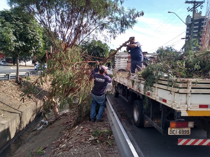 "Vamos retirar as árvores e os galhos que estão causando transtornos e, em seguida, a equipe da Sedema realizará a roçada do mato que está no canal, tudo isso para minimizar os alagamentos na região", afirma o diretor da Defesa Civil, Odair Mello.