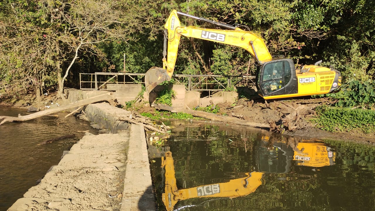 Foram retirados três caminhões de 12 m3 de material, entre pedaços de madeira, galhos, lixo e lama, acumulado nas comportas