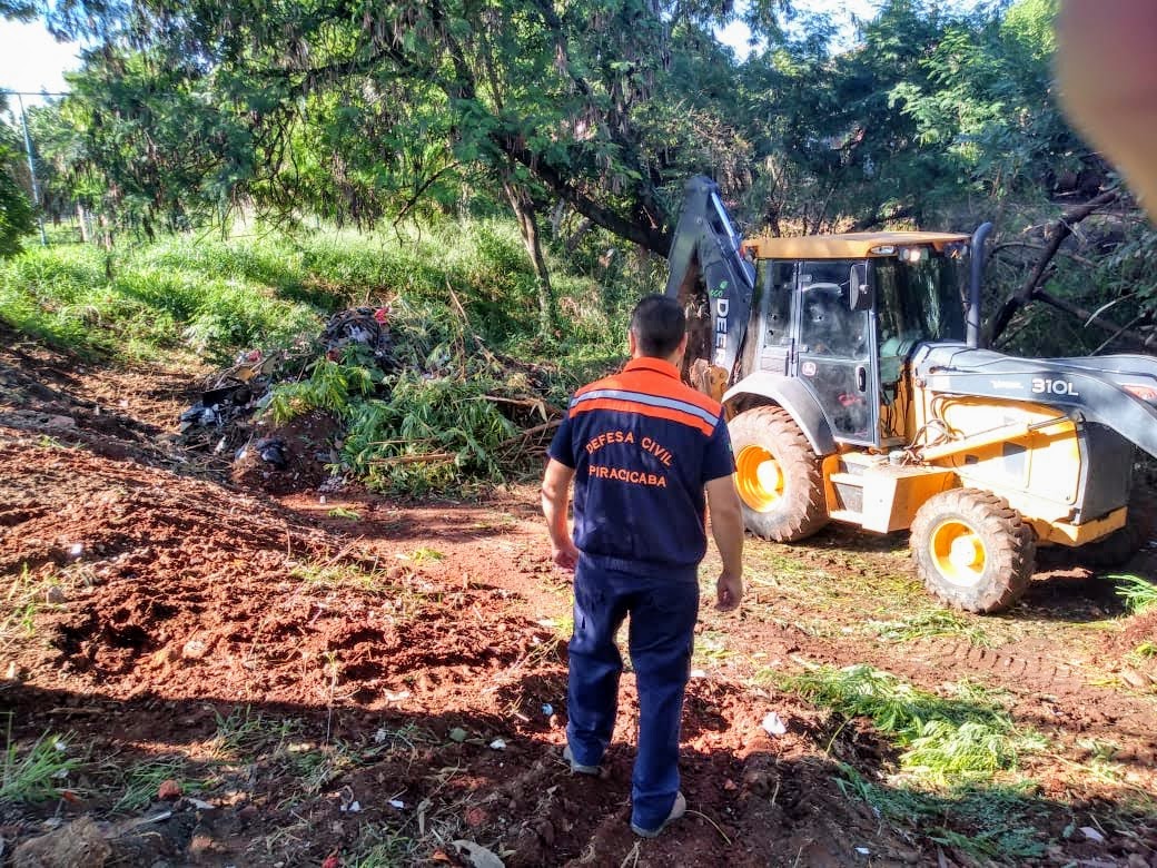 A Prefeitura de Piracicaba, por meio da Sedema (Secretaria de Defesa do Meio Ambiente), em parceria com a Defesa Civil realiza a limpeza da área verde da rua do Enxofre, no bairro Paulistar.