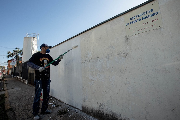 Equipe realiza parte final da pintura externa da UPA Piracicamirim – Foto: Isabela Borghese