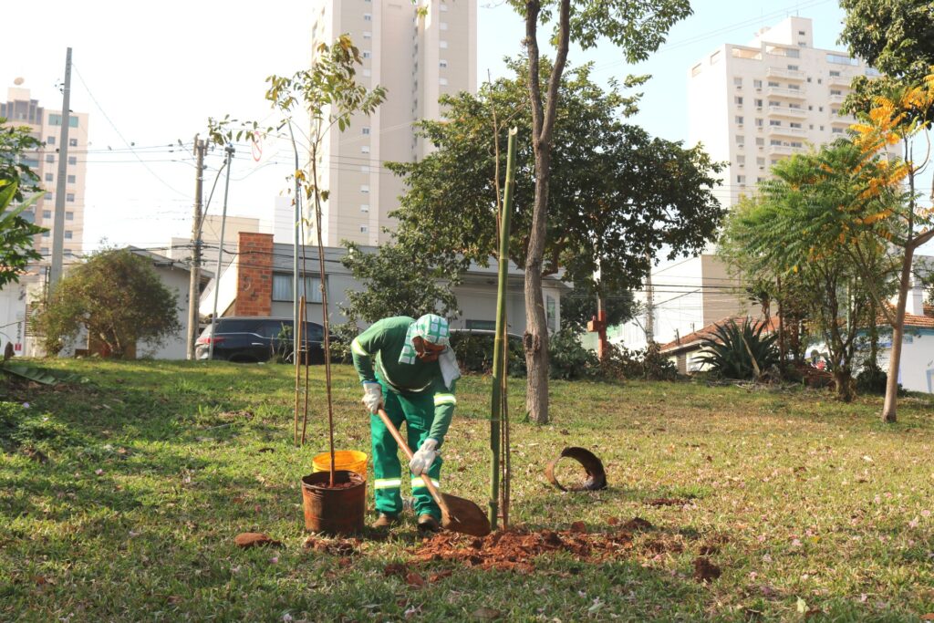 A Prefeitura, por meio das Secretarias de Infraestrutura e Meio Ambiente (Simap) e Obras e Zeladoria (Semozel), plantou ontem, 21/08, mudas de sapucaia, jequitibá-rosa e ipê-tabaco na praça da Boyes, após supressão de uma árvore da espécie falsa-seringueira no local. A escolha pelas espécies foi por serem nativas da região, de grande porte e com ciclo de vida longo.