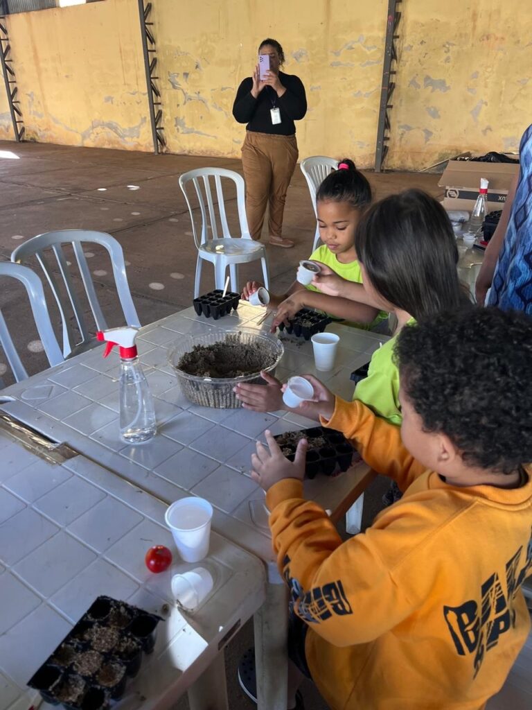 Atividade reuniu cerca de 40 crianças que participaram do processo de semeadura de hortaliças