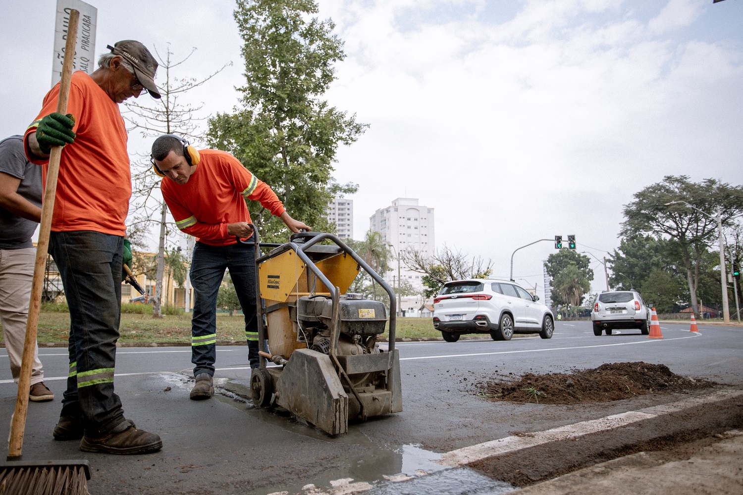 Primeiro passo é o recorte do pavimento ao redor do buraco | Foto: Isabela Borghese/CCS
