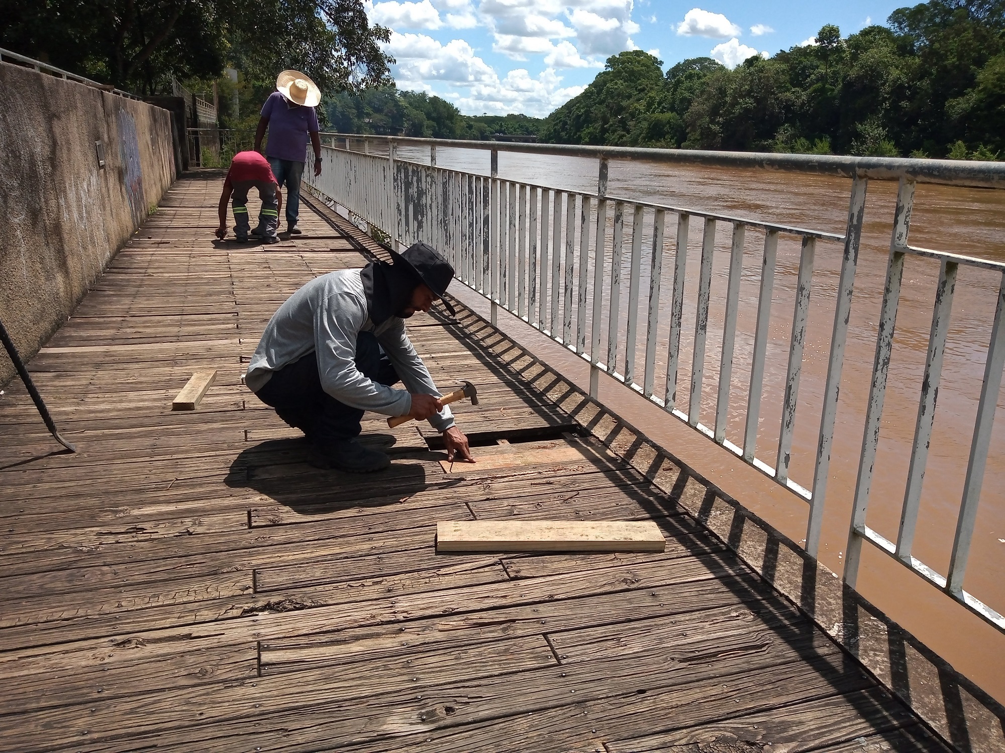 Prefeitura executa serviços de reparo no assoalho do deck da Rua do Porto A Prefeitura de Piracicaba, por meio da Secretaria Municipal de Obras e Zeladoria (Semozel), realiza serviços de reparo no assoalho do deck localizado em frente ao Casarão do Turismo, na Rua do Porto, na margem do rio Piracicaba. A medida é paliativa, para melhorar a estrutura e facilitar o passeio de visitantes e turistas, até que a reforma completa seja licitada. O deck está interditado até que os serviços sejam concluídos; a previsão é amanhã, 10/02.