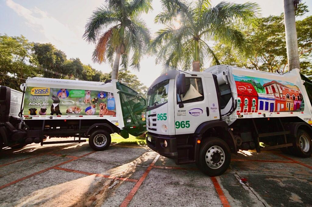 A Prefeitura de Piracicaba recebeu cinco novos veículos para renovação da frota de coleta de lixo e operação no tratamento de resíduos sólidos no aterro sanitário da cidade. Dois dos novos caminhões que serão usados na coleta trazem estampas que incentivam a adoção de animais e valorizam a arte e paisagens da cidade, com desenhos feitos pelo artista Diógenes Moura, que mostram o rio Piracicaba e a Rua do Porto.