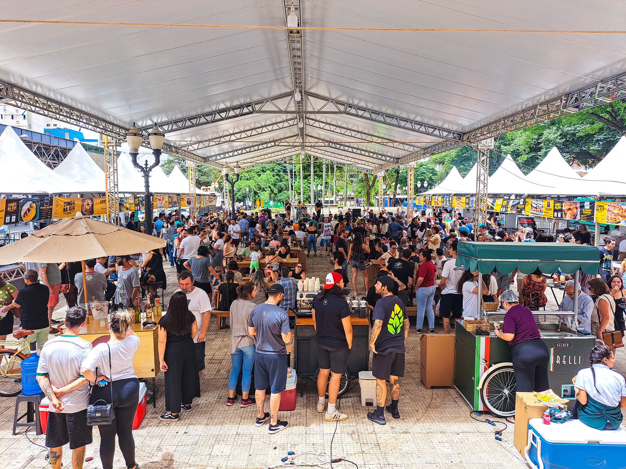 Cerca de 2.500 pessoas participaram da Feira Gastronômica Comida na Rua no ano passado – Foto CCS Os critérios para inscrição dos estabelecimentos/chefs e docerias são: representar uma empresa constituída (CNPJ), com atividade compatível à prestação de serviços do evento, ter licença expedida pela Vigilância Sanitária e atuar em restaurante e/ou rotisserie. Quanto às cervejarias, elas também devem representar uma empresa constituída (CNPJ), com atividade compatível a prestação de serviços do evento, fabricar cerveja artesanal e vender a preços populares na feira. Terão preferência na seleção os estabelecimentos situados em Piracicaba. O espaço disponibilizado será de 4m x 2m. Se a inscrição for aprovada e autorizada a participação no evento, o inscrito deverá efetuar o pagamento da taxa de uso do solo, que será expedida com vencimento para 14/07, seguindo os valores de R$ 800 (tendas de chefs), R$ 450 (docerias), R$ 1.200 (cervejarias) e R$ 1.600 (cervejarias com espaço adicional). “Eventos como este são ideais para promover o turismo na nossa cidade e, consequentemente, movimentam a economia do município. Além disso, valorizamos as produções locais, dos estabelecimentos gastronômicos que estão aqui, dando ainda mais visibilidade a eles”, falou Alessandra Freire, diretora municipal de Turismo. ANTERIOR – No ano passado, a quarta edição da Feira Gastronômica – Comida na Rua teve cardápio variado, para agradar todos os paladares, incluindo pizzas, wraps, empanadas argentinas, hambúrgueres, waffes, donuts, pastel e doces, além de cafés, sucos, refrigerantes e kombuchas. Na ocasião foram vendidas 4.079 porções salgadas e doces, além de 4.100 copos de chope de 400 ml. Os preços dos pratos variaram de R$ 8 a R$ 40. “Ficamos muito contentes com o resultado do evento do ano passado. Os representantes dos restaurantes e cervejarias e o público nos deram um feedback positivo, por isso, vamos dar continuidade com o evento, aproveitando para celebrar também o aniversário da cidade, que fará 256 anos”, disse Alessandra.