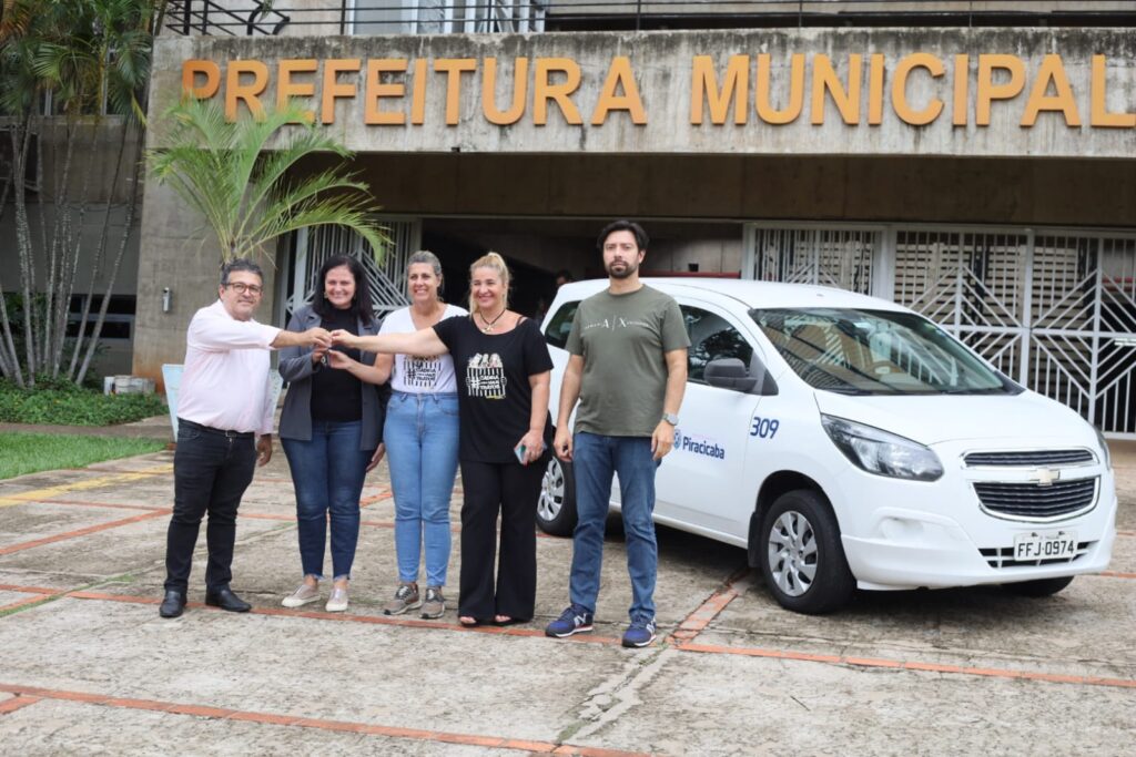 A Prefeitura, por meio da Secretaria de Infraestrutura e Meio Ambiente (Simap), recebeu hoje, sexta-feira, 24/11, um veículo da Câmara Municipal, que será integralmente destinado e utilizado pelo Departamento de Bem-Estar Animal (DBEA). A entrega oficial aconteceu na rampa do Centro Cívico e contou com a presença do titular da Simap, Alex Gama Salvaia; o secretário de Transportes Internos (Semutri), Reinaldo Pousa; a vereadora Alessandra Bellucci, que teve a iniciativa da cessão do carro pelo Poder Legislativo; e a diretora do DBEA, Luciana Polizel.