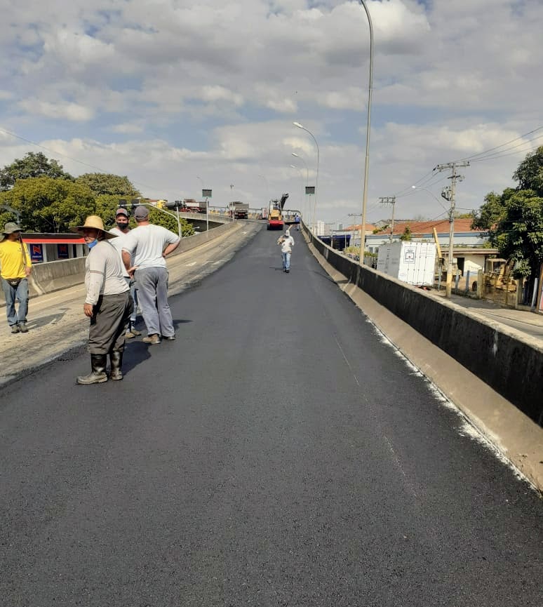 A Prefeitura iniciou ontem, 10/05, obras de recuperação do pavimento asfáltico no viaduto Francisco Jesuíno Avanzi, que liga as avenidas Limeira e 1º de Agosto, no bairro da Vila Rezende. As obras consistem na retirada de borrachudos e colocação de massa asfáltica, com previsão de conclusão para amanhã, na quarta-feira, 12/05.