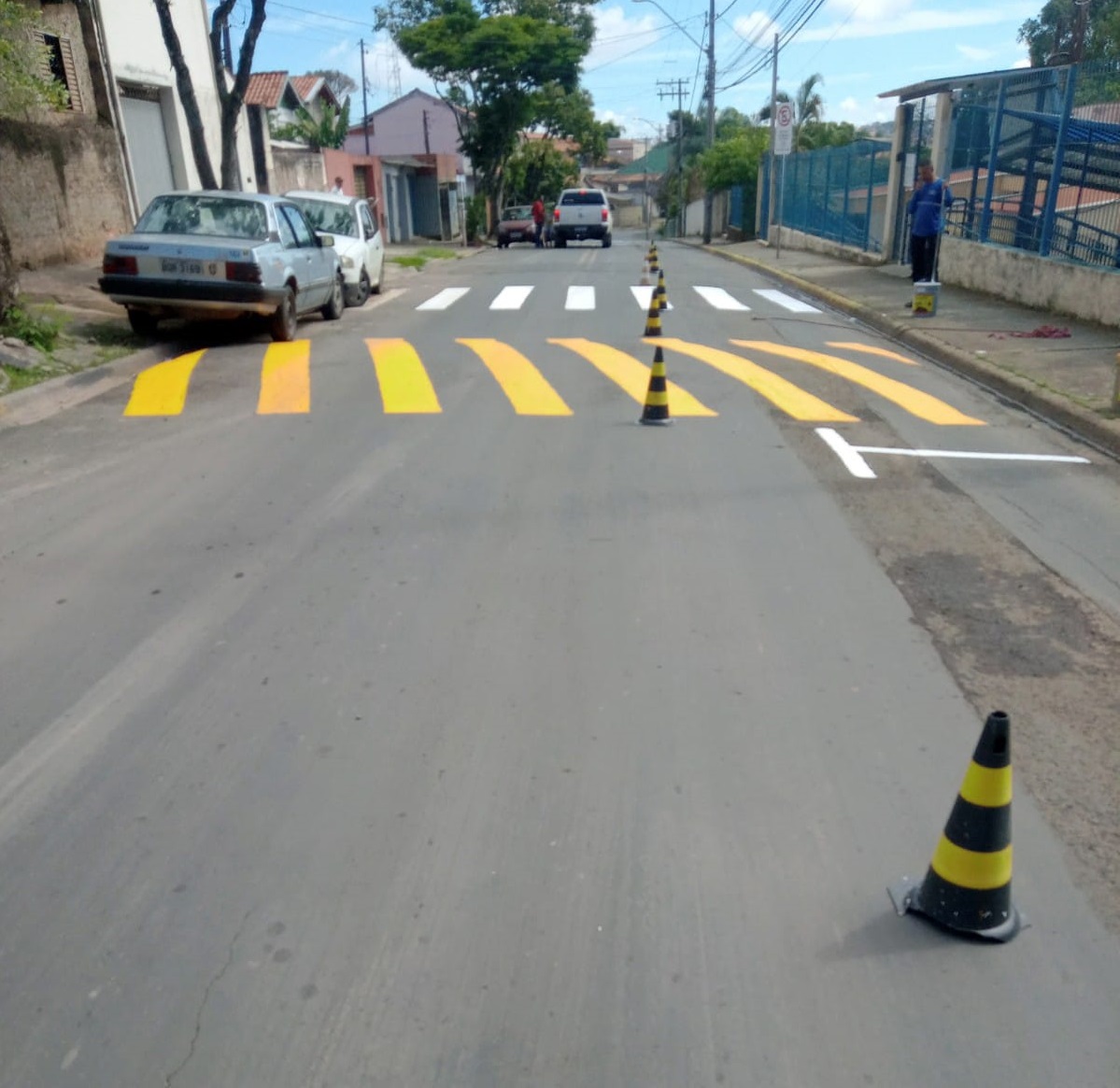 Faixas de pedestre, lombada e vagas de estacionamento tiveram reforço na sinalização