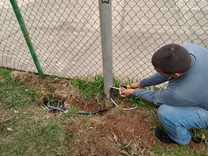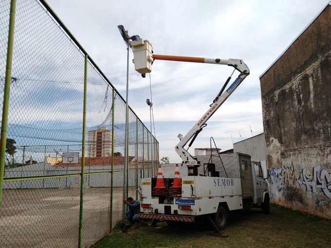 A Prefeitura de Piracicaba, por meio da Secretaria Municipal de Obras (Semob), reinstala a fiação elétrica de quadra esportiva no bairro Nova América. O local fica na rua Santo André, próximo ao número 200. As equipes iniciaram os serviços hoje, quarta-feira, 06/07. Amanhã, quinta-feira, 07/07, será feita a manutenção nos projetores.