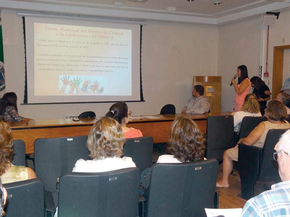 Na oportunidade, a secretária municipal de Desenvolvimento Social, Eliete Nunes, apresentou informações relativas ao repasse e arrecadação de recursos para o Fumdeca. "O repasse deste ano, comparado ao de 2016 – de R$1,9 milhão, foi 17,7% maior. Não obstante, a arrecadação também aumentou se analisarmos que o Fundo arrecadou R$ 1.585.853,40, em 2015, para execução dos projetos em 2016, e R$ 2.452.482,95 em 2016 para este ano", explica. Os projetos aprovados pelo CMDCA atendem à promoção, proteção e defesa de direitos baseados em cultura, esportes e lazer; ações complementares ao serviço de acolhimento e de medidas socioeducativas; aprendizagem profissional; enfrentamento da violência, exploração e abuso sexual contra crianças e adolescentes; estímulo à autonomia de crianças e adolescentes com deficiência. Para receberem os recursos, as entidades sociais apresentam projetos viáveis para execução de um trabalho voltado à criança e ao adolescente.