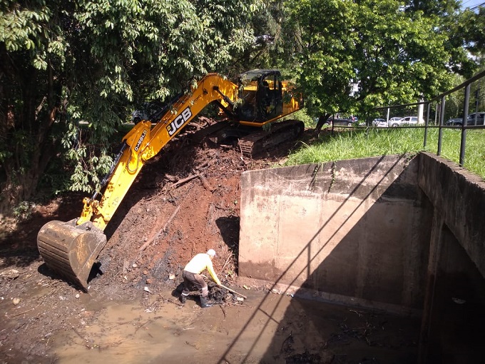 Equipes da Prefeitura de Piracicaba realizaram, na manhã desta quinta-feira (10) a desobstrução da galeria do córrego do Enxofre, no entroncamento das avenidas Jaime Pereira e Rui Teixeira Mendes. O local estava bloqueado por troncos, lixo e entulho que foram carreados pelas fortes chuvas recentes. Cerca de 15 toneladas de resíduos foram retiradas da galeria. O trabalho – que envolveu o uso de dois caminhões truck e uma escavadeira hidráulica – foi executado por servidores da Defesa Civil, da Secretaria Municipal de Obras (Semob), da Secretaria Municipal de Agricultura e Abastecimento (Sema) e da Secretaria Municipal de Defesa do Meio Ambiente (Sedema).
