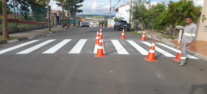 Reforço da sinalização na rua Aparecida Augusto- foto- divulgação Os serviços de revitalização viária realizados pela Semuttran incluem também faixa de pedestre, lombada, faixa elevada, eixo de rua, pare, zebrado, faixa de canalização e desaceleração, Linha de Redução de Velocidade (LRV), entre outros.