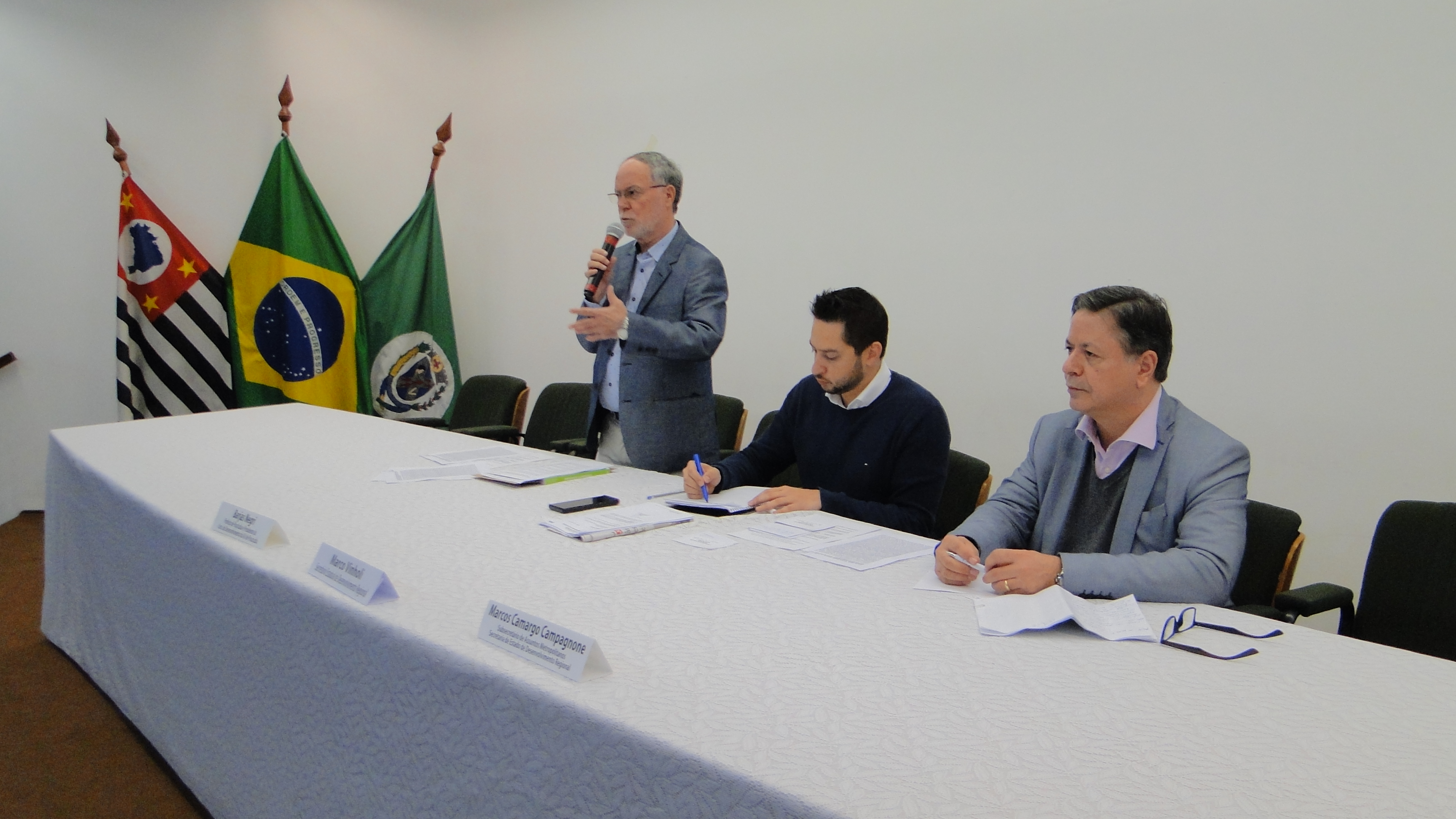 Prefeito Barjas Negri, Secretário Estadual de Desenvolvimento Regional Marco Vinholi e o Secretário Estadual de Assuntos Metropolitanos Marcos Camargo Campagnone