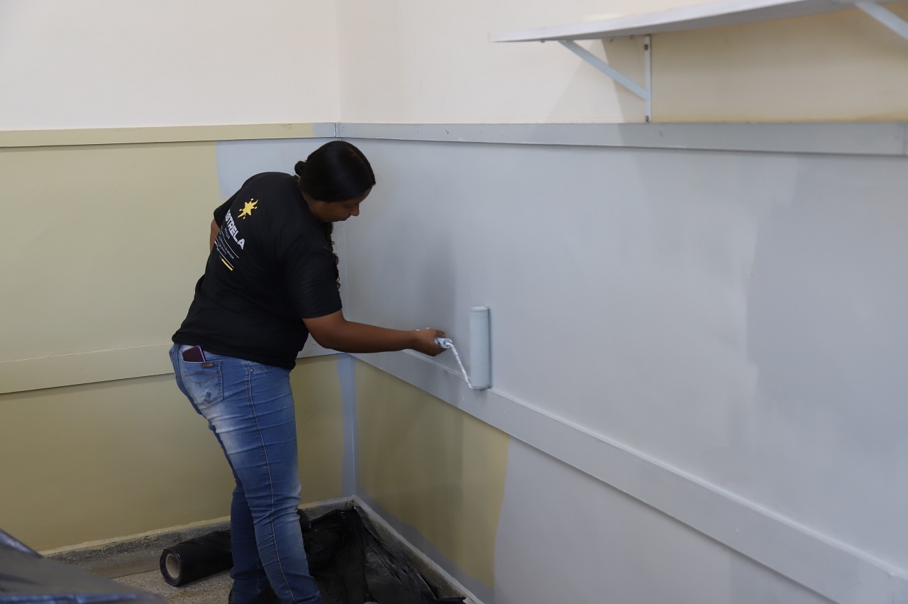 A unidade do Jardim Pombeva está recebendo pintura interna e externa, além de troca de portas metálicas e retirada de revestimentos.