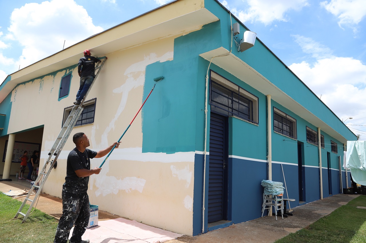 A escola que atende a comunidade do Parque São Jorge, também recebeu pintura externa, troca de calhas e parte hidráulica.