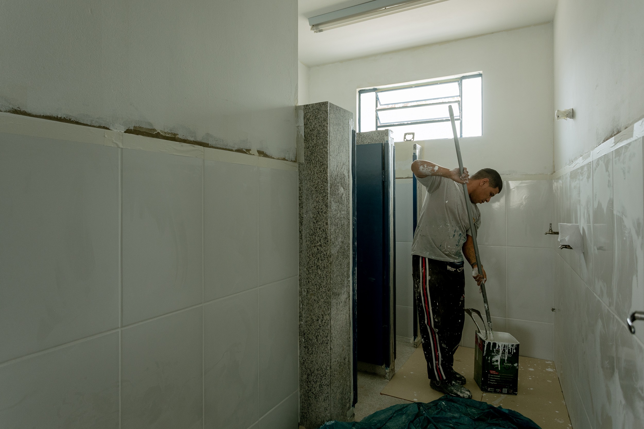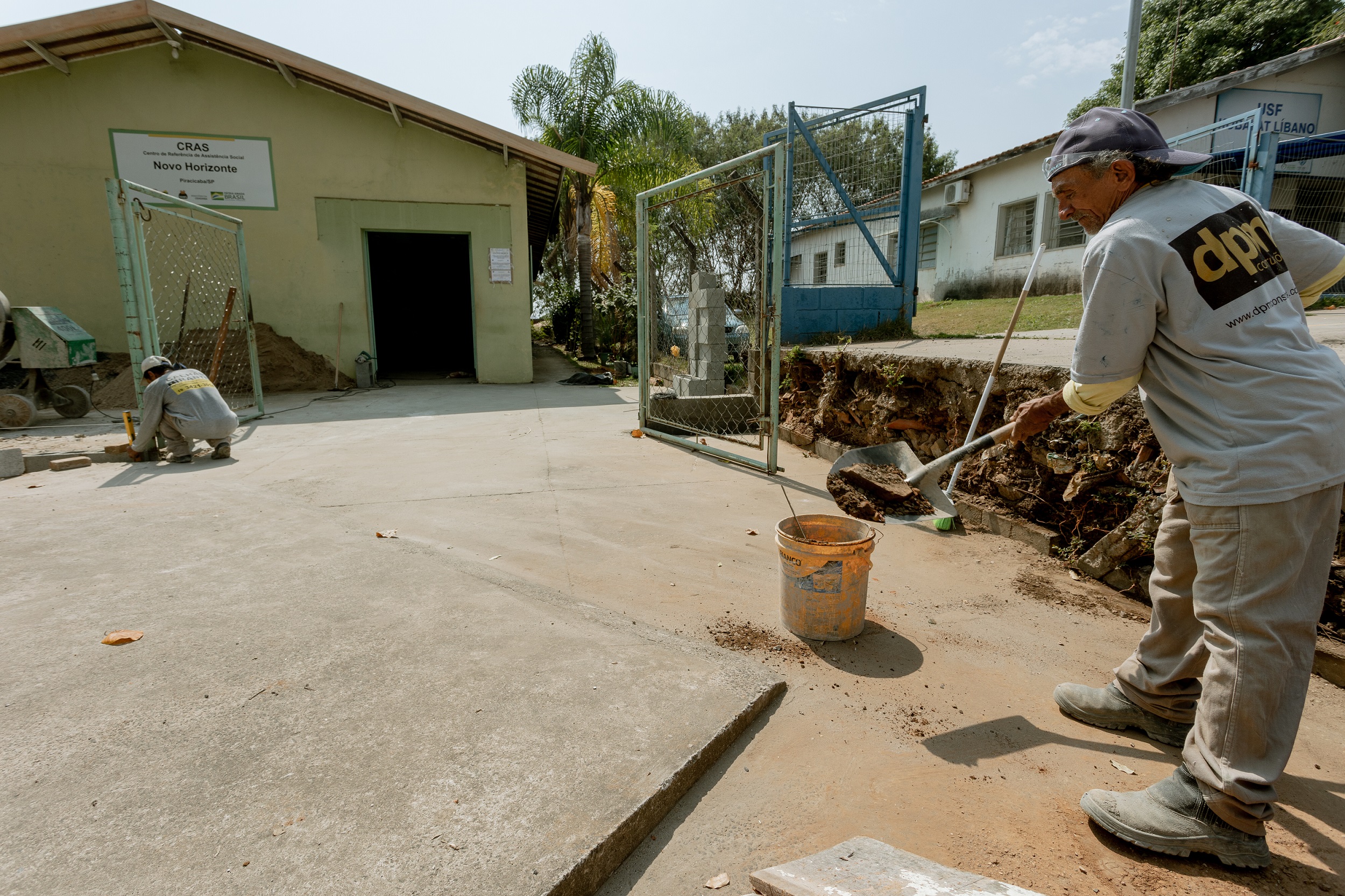 No Novo Horizonte, último dos três prédios a iniciar a reforma, o trabalho começou com a troca do telhado. Atualmente, os trabalhadores estão empenhados em atenuar o desnível da calçada. Outras ações, como o concreto no entorno da unidade, instalação do piso em granilite na parte interna, manutenção do alambrado, intervenções elétricas e pintura geral serão realizadas na sequência.