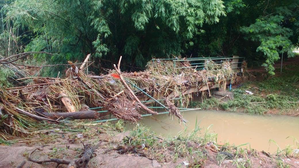 Passarela sobre o córrego do Enxofre foi danificada pela forças das águas e será recuperada