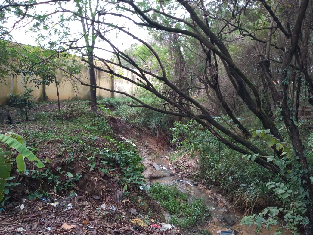 Contenção será feita no córrego para proteger as fundações da EMEF Rachel de Queiroz (muro amarelo)