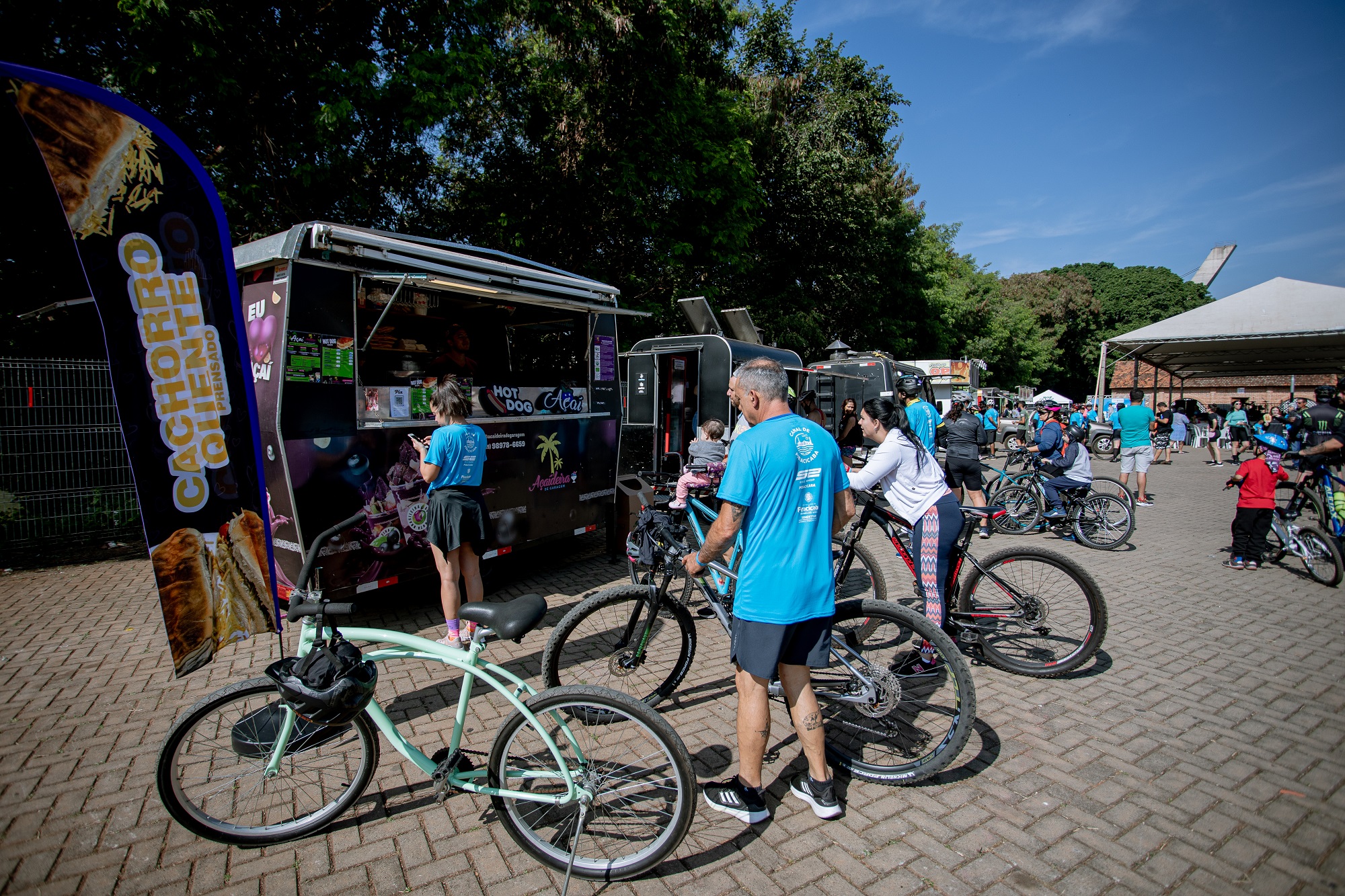 Após o percurso, os ciclistas aproveitaram os food trucks do Empreenda Pira, com pastel, garapa, espetinho, lanches, yakisboba, churros, temaki, hot dog, açaí, doces e chopp