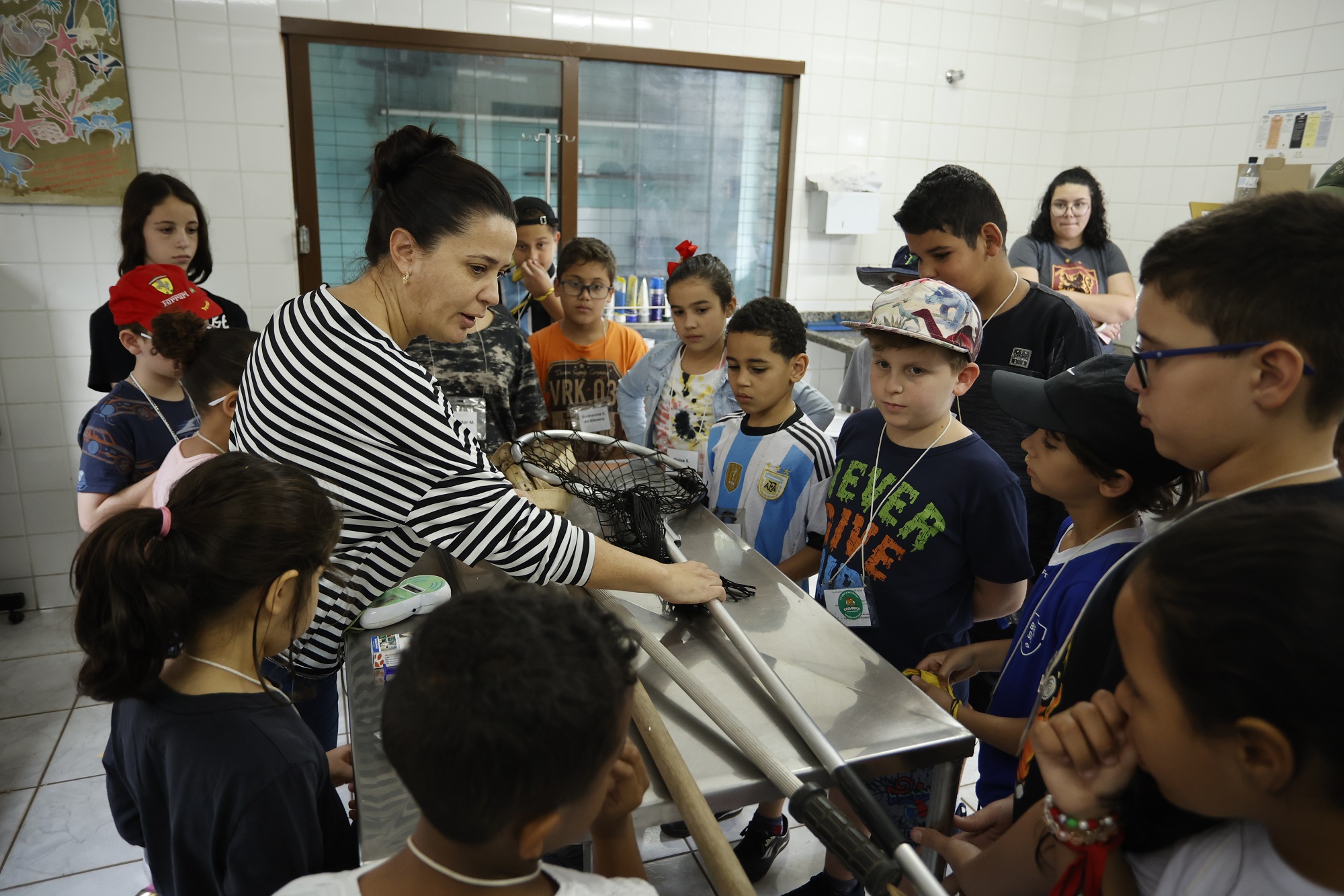 No primeiro dia, as crianças participaram de uma visita monitorada aos bastidores, com monitoria da educadora ambiental Laís Ferraz de Camargo