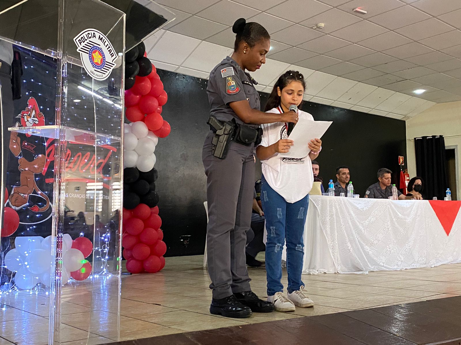 O secretário municipal de Educação, Bruno Roza, também esteve presente na cerimônia e ressaltou a importância do trabalho realizado pelos policiais educadores.