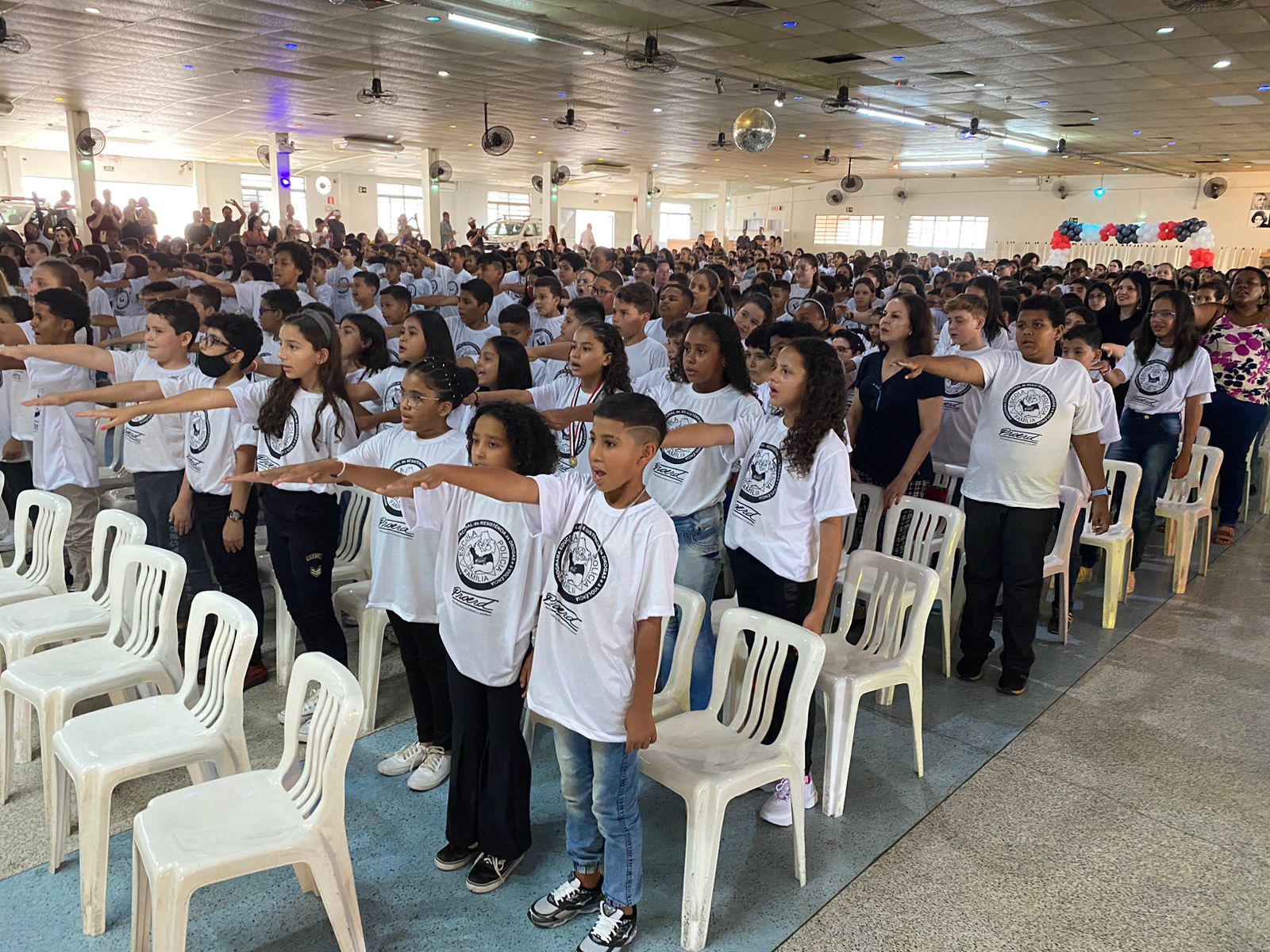 Na cerimônia realizada hoje, 07/12, outras 636 crianças de nove escolas da rede receberam os certificados da conclusão do Programa.