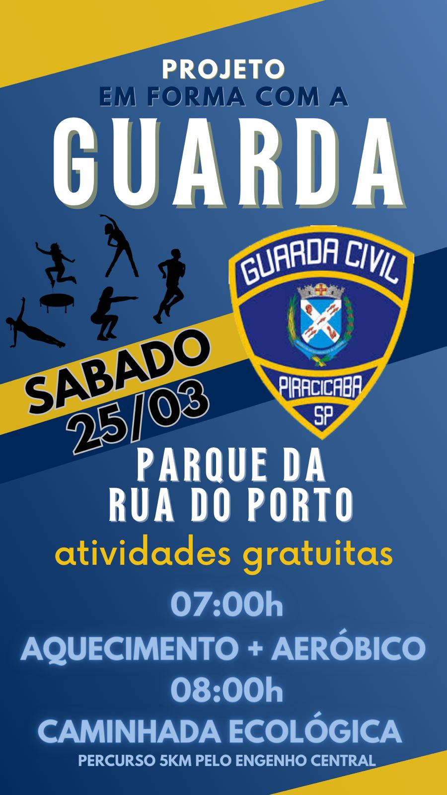 O Em Forma com a Guarda é um projeto da Guarda Civil de Piracicaba de promoção de atividade física, realizado de forma gratuita em dois locais. Às terças e quintas, a população pode praticar atividades físicas na Academia da Guarda Civil, das 19h às 21h, e aos sábados, das 7h às 10h, no Parque da Rua do Porto.