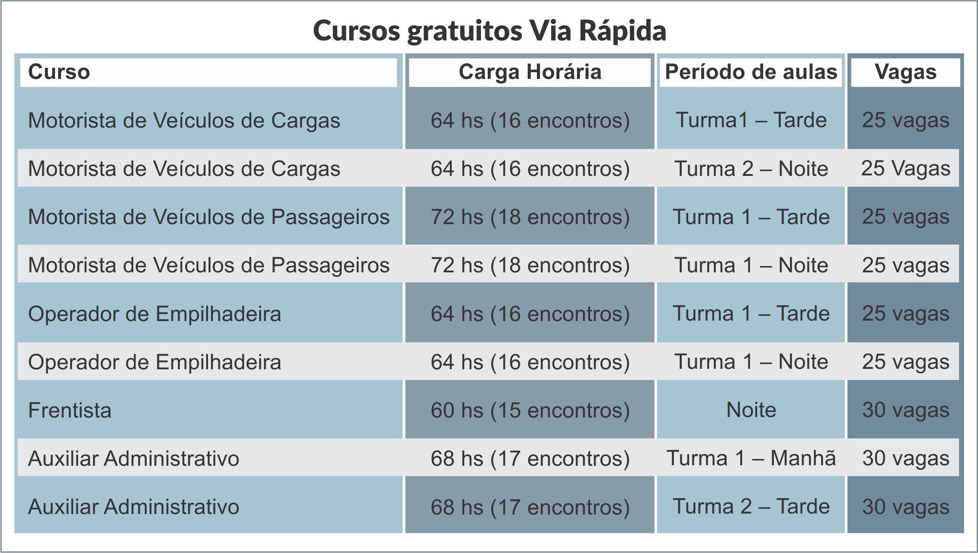 As inscrições para 240 vagas dos cursos gratuitos do programa Via Rápida estão abertas em Piracicaba e serão ministradas pelo SEST SENAT, em parceria com a Prefeitura. Para se inscrever, basta acessar o site do programa – www.cursosviarapida.sp.gov.br