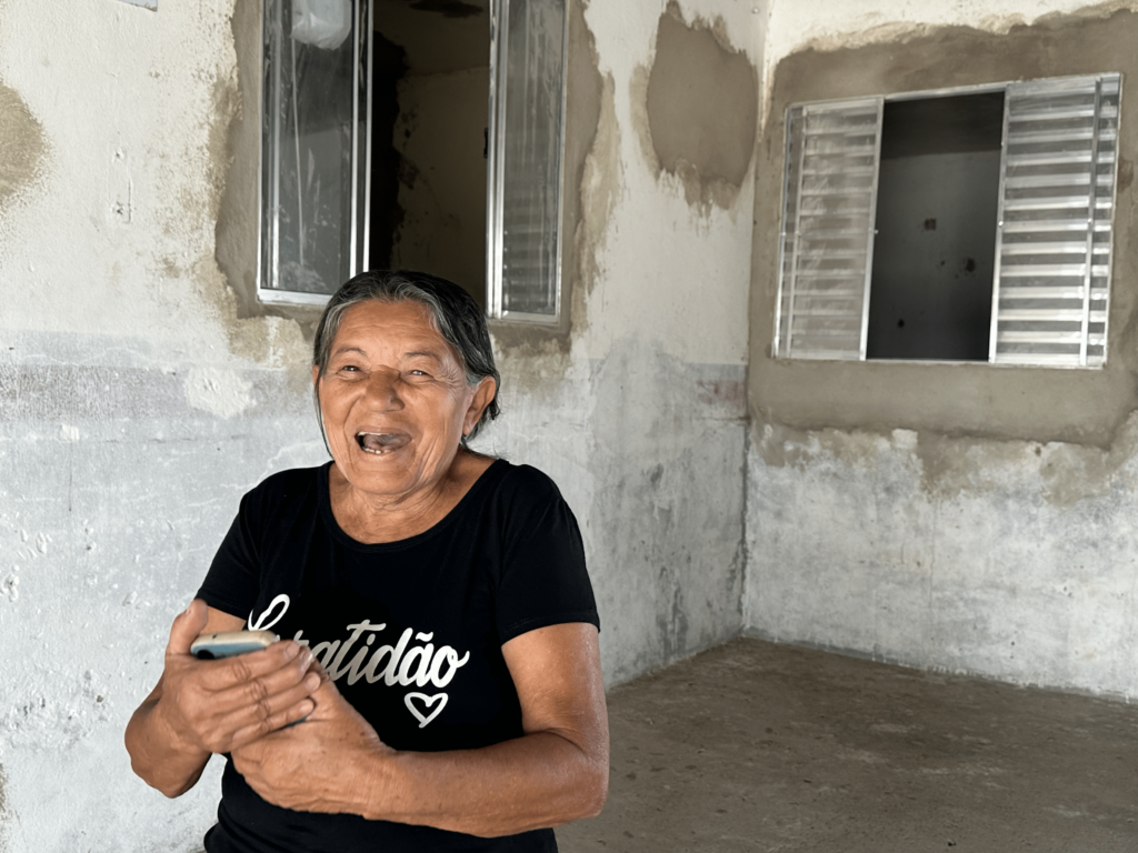 A aposentada Maria Batista Silva, de 66 anos, contou que a maior dificuldade para terminar a casa que habitou por anos era custear a mão de obra. Agora, a residência recebe troca de piso completo, construção de cozinha com pia, reforma de banheiro e janelas. “Estou muito feliz com o andamento da obra e não vejo a hora de poder reunir toda a família aqui em casa”, disse.