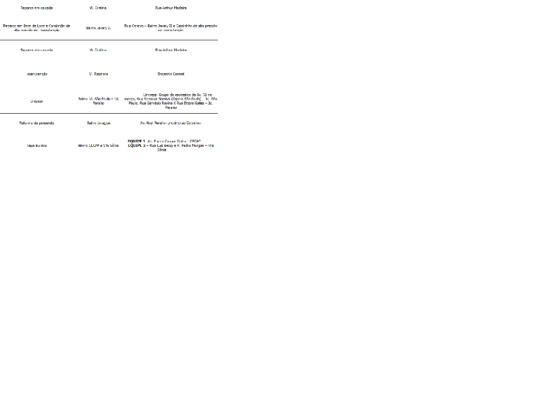 Programação da Secretaria Municipal de Obras