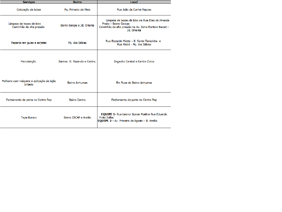 Programação da Secretaria Municipal de Obras