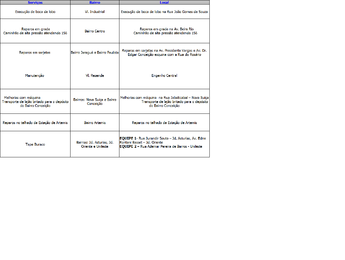 Programação da Secretaria Municipal de Obras