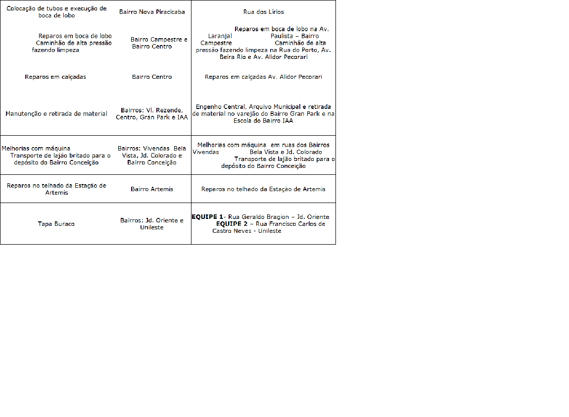 Programação da Secretaria Municipal de Obras