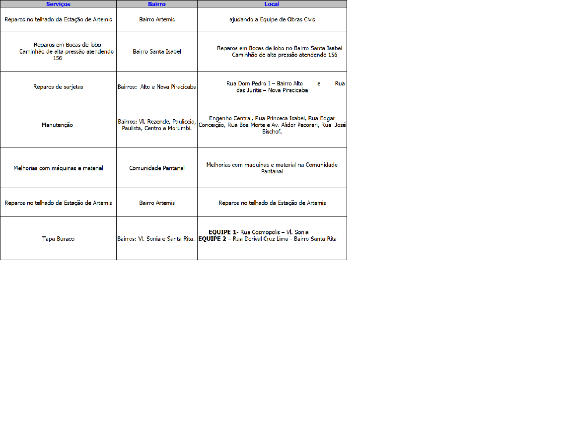 Programação da Secretaria Municipal de Obras