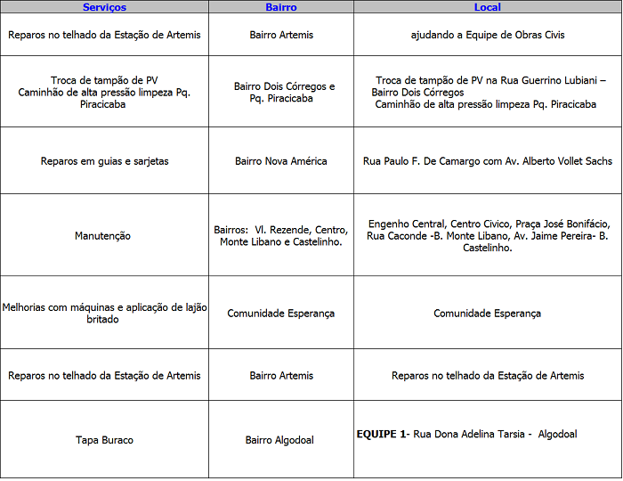 Programação da Secretaria Municipal de Obras