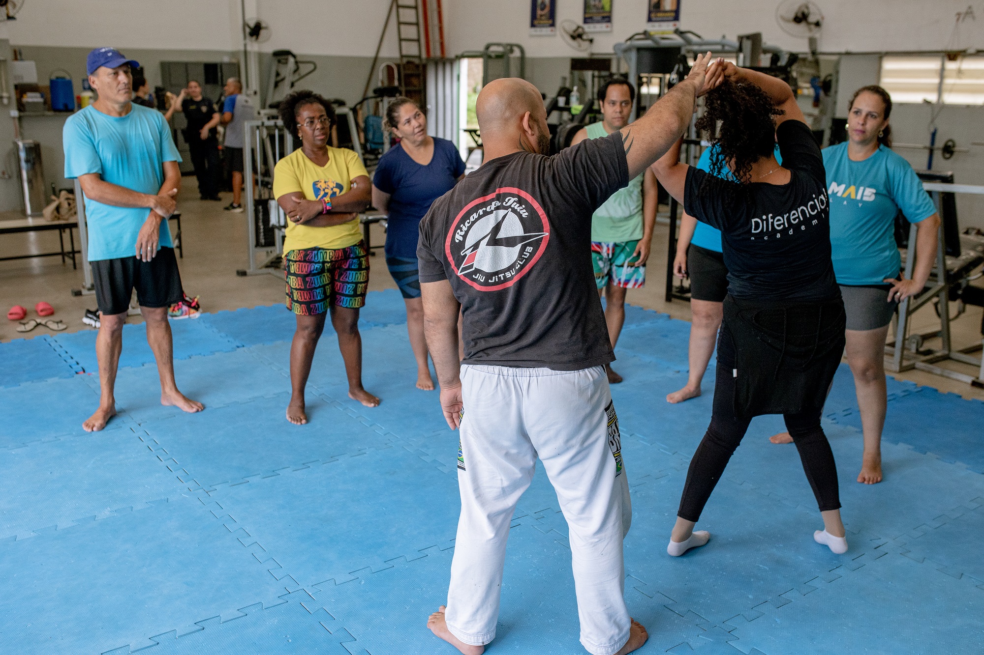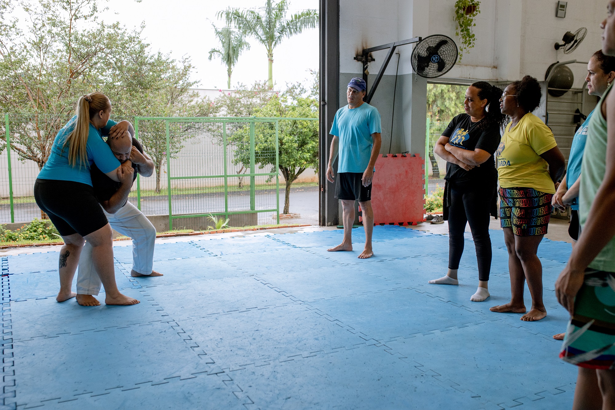 No sábado, os usuários do projeto puderam se exercitar, ter noções básicas de defesa pessoal e ainda conhecer um pouco sobre a Lei Maria da Penha e a Patrulha Maria da Penha, grupamento da Guarda Civil cuja função é realizar rondas na casa, locais de trabalho e estudo de mulheres vítimas de violência doméstica com medida protetiva que tenham solicitado o serviço.