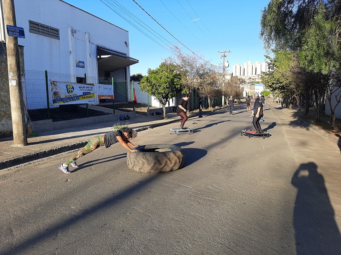 Participantes do Em forma fazendo aula de funcional