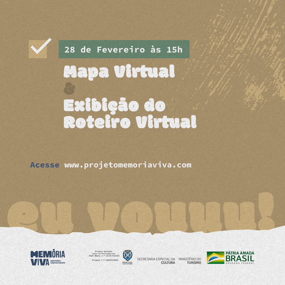 A Secretaria Municipal da Ação Cultural (Semac), por meio da Lei Aldir Blanc 14.017/2020, criada para destinar ações emergenciais ao setor cultural durante a pandemia da Covid-19, lançará o Mapa Virtual do Patrimônio Cultural Piracicabano, que faz parte do projeto Memória Viva. O lançamento será pelo site www.memoriaviva.com e pelas redes sociais, no domingo, dia 28/02, às 15 h.