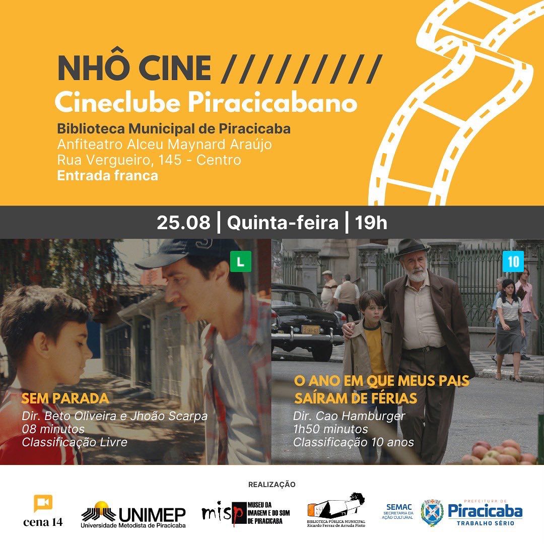 SERVIÇO – Projeto Nhô Cine – Apresentação dos filmes: Sem Parada e O Ano em que Meus Pais saíram de Férias Dia 25/08, às 19h. Local: Anfiteatro da Biblioteca Municipal Ricardo Ferraz de Arruda Pinto. Rua Vergueiro, 145 – Centro, Piracicaba – SP. Entrada franca.