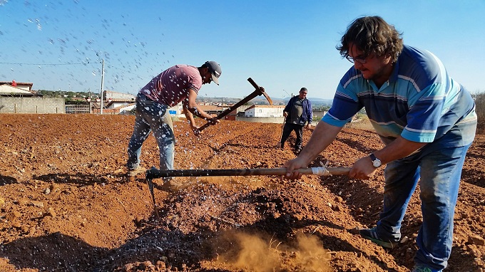 Sema executou 18 canteiros com larguras fixas; terra roxa, boa para o plantio, foi colocada na área