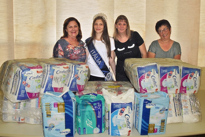 A rainha da Itália na 36ª Festa das Nações realizada no Engenho Central, de 15 a 19 de maio, Ana Carolline Trevisan Siqueira, doou ao Fundo Social de Solidariedade do Município, 389 unidades de fraldas geriátricas. A entrega aconteceu na tarde desta segunda-feira, 27/05 e contou com a participação da presidente do Fussp, Sandra Negri.