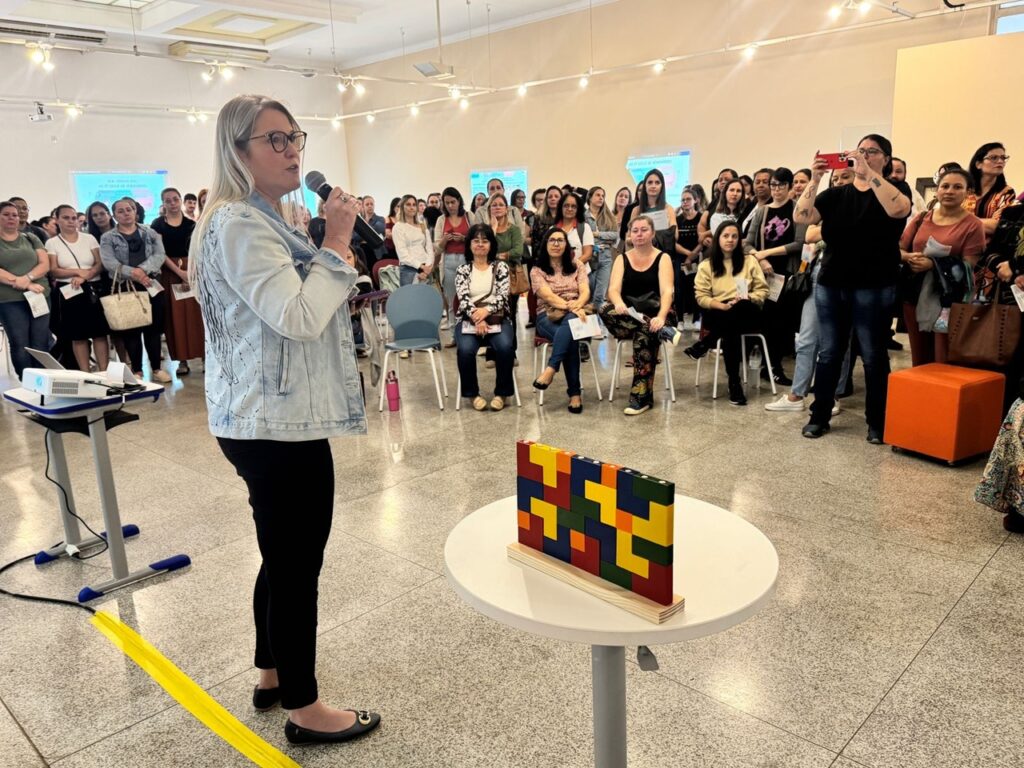 A abertura do evento contou com a presença da secretária municipal de Educação, Juliana Vicentin, que destacou a importância de espaços formativos para a prática docente. “A troca de vivências fortalece a construção do conhecimento e inspira novas abordagens pedagógicas. Esses momentos são fundamentais para que os professores possam refletir sobre suas práticas, trocar experiências e encontrar novas formas de se conectar com as crianças no cotidiano escolar”, afirmou a secretária.