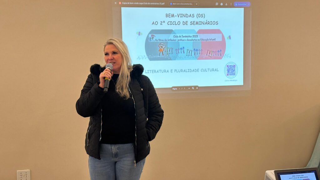 Com a temática Literatura e Pluralidade Cultural, o encontro promoveu reflexões sobre o papel das narrativas e das múltiplas culturas no cotidiano escolar, além de destacar a importância do letramento na Educação Infantil. Nessa etapa da aprendizagem, o letramento acontece por meio de experiências significativas com a linguagem, histórias, símbolos e expressões culturais, sempre respeitando os tempos e modos próprios das crianças.