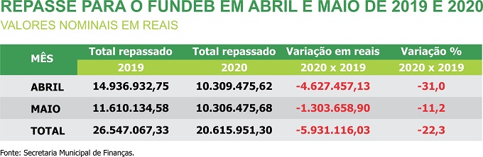 Repasse para o Fundeb tem queda de R$ 5,9 milhões em dois meses