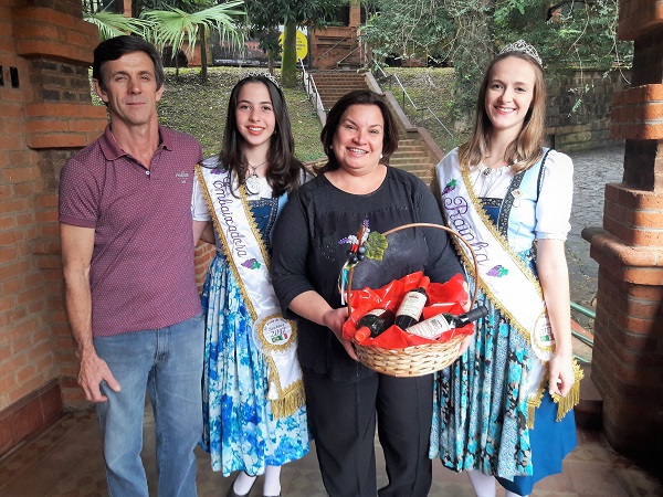 A Embaixadora Sofia Fialho Vitti e a Rainha Flavia Vitti Correr foram recepcionadas pela secretária Municipal da Ação Cultural e do Turismo, Rosângela Camolese, e ofereceram alguns exemplares da produção vinícola da Coopervin, cooperativa sediada na comunidade trentino-tirolesa que produz atualmente cerca de 20 mil litros anuais de vinho nas variedades tinto, rosé, branco, espumantes, além de geléias e sucos.