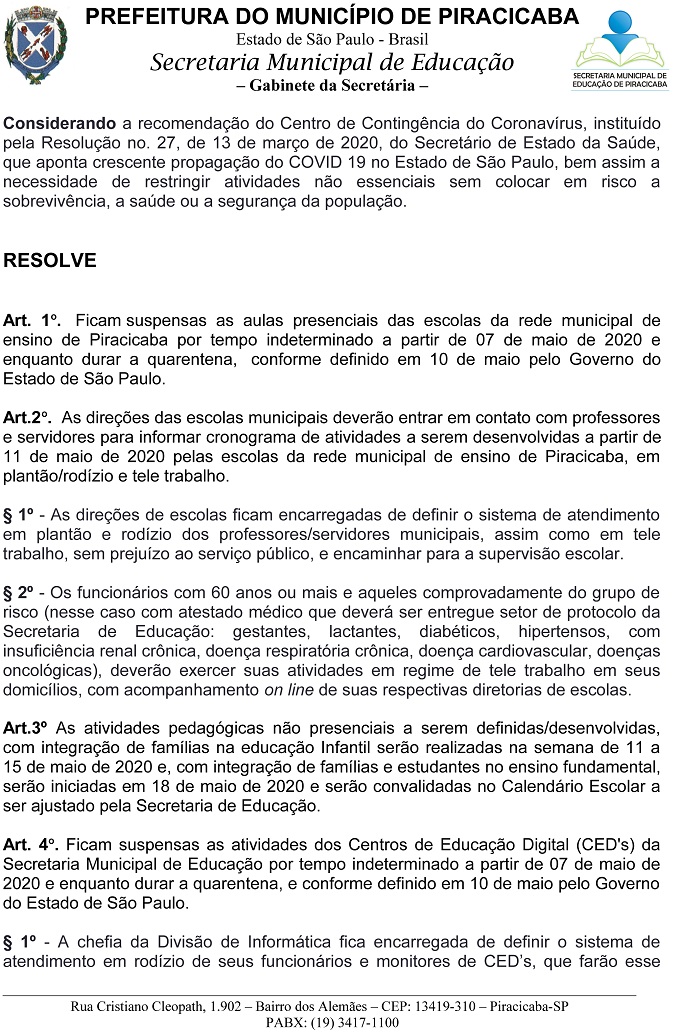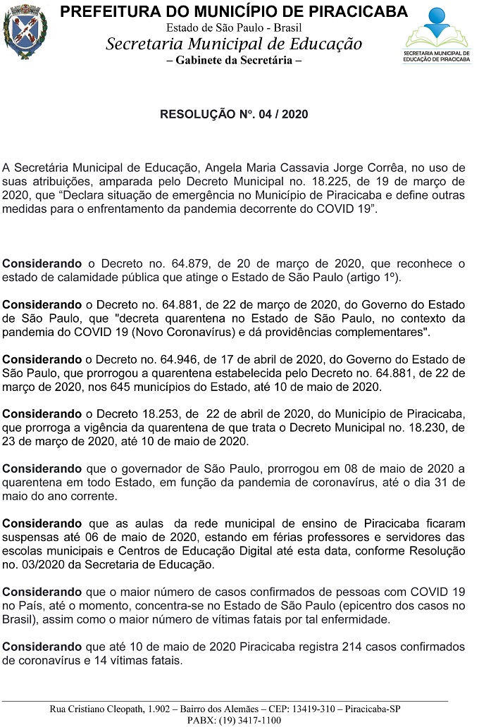 Resolução Nº 04/2020 – Secretaria Municipal de Educação