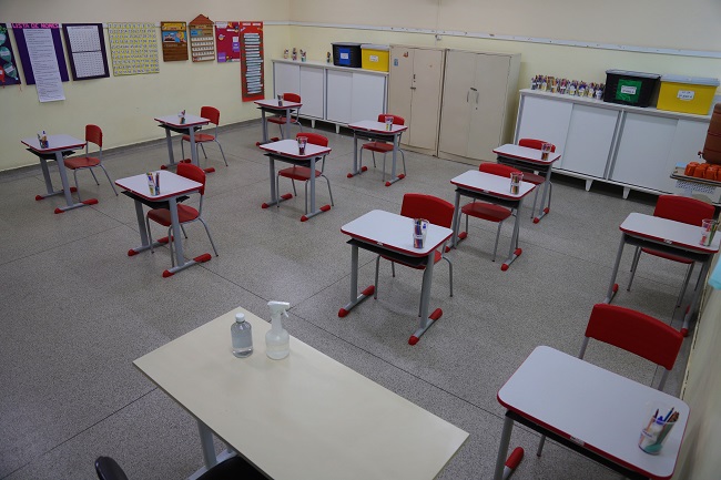 O recesso de meio de ano terminou no dia 23/07, e essa semana foi de preparação nas escolas para receber os alunos presencialmente no dia 02/08, próxima segunda-feira. As escolas estão preparadas com totens de álcool gel nas entradas, junto com tapetes sanitizantes para descontaminação dos alunos. Todas as salas de aulas possuem álcool gel e terão o distanciamento mínimo de um metro entre as crianças.